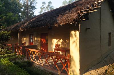 Zum Abschluss meines Nepal-Aufenthalts noch mal ein echter Hoehepunkt: Der Bardia-Nationalpark. Nach 15 Stunden Busfahrt (der Bus ist wie immer gerammelt voll, diesmal gibt es allerdings niemand im Bus, der einigermaßen englisch spricht) setzt man mich ab: irgendwo im nirgendwo. Mitten in der Nacht. Ich bin der einzige, der hier aussteigt. Zunächst einmal sehe ich überhaupt niemand und hoffe nur, dass ich hier richtig bin. Und tatsächlich: da steht der von mir vorher organisierte Pick-up. Auf der Ladepritsche eines Jeeps fährt man mich nochmals eine halbe Stunde über staubige Schotterpisten, durch Flüsse etc. zur Forest-Hideaway-Lodge, meiner Unterkunft.