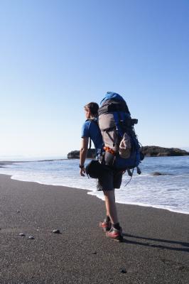 Sechs Tage mit Rucksack, Zelt, Schlafsack, Isomatte, Kocher, Spiritus, Wasser, Verpflegung für 1 Woche und Fotoausrüstung (insgesamt zu Beginn ca. 22 kg) an der Westkueste Vancouver Islands.